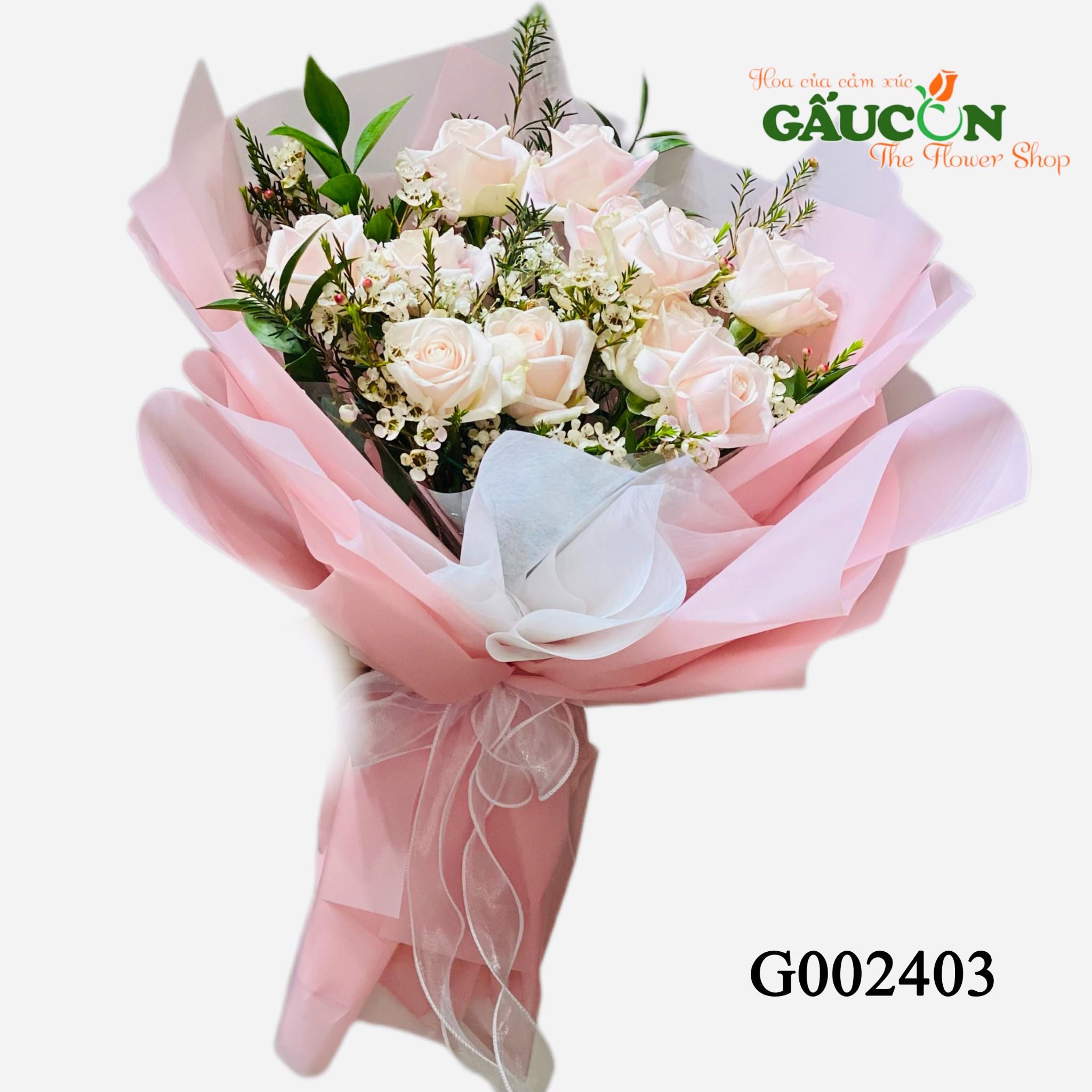 👉Quy cách: hoa hồng kem, thanh liễu trắng, lá chanh