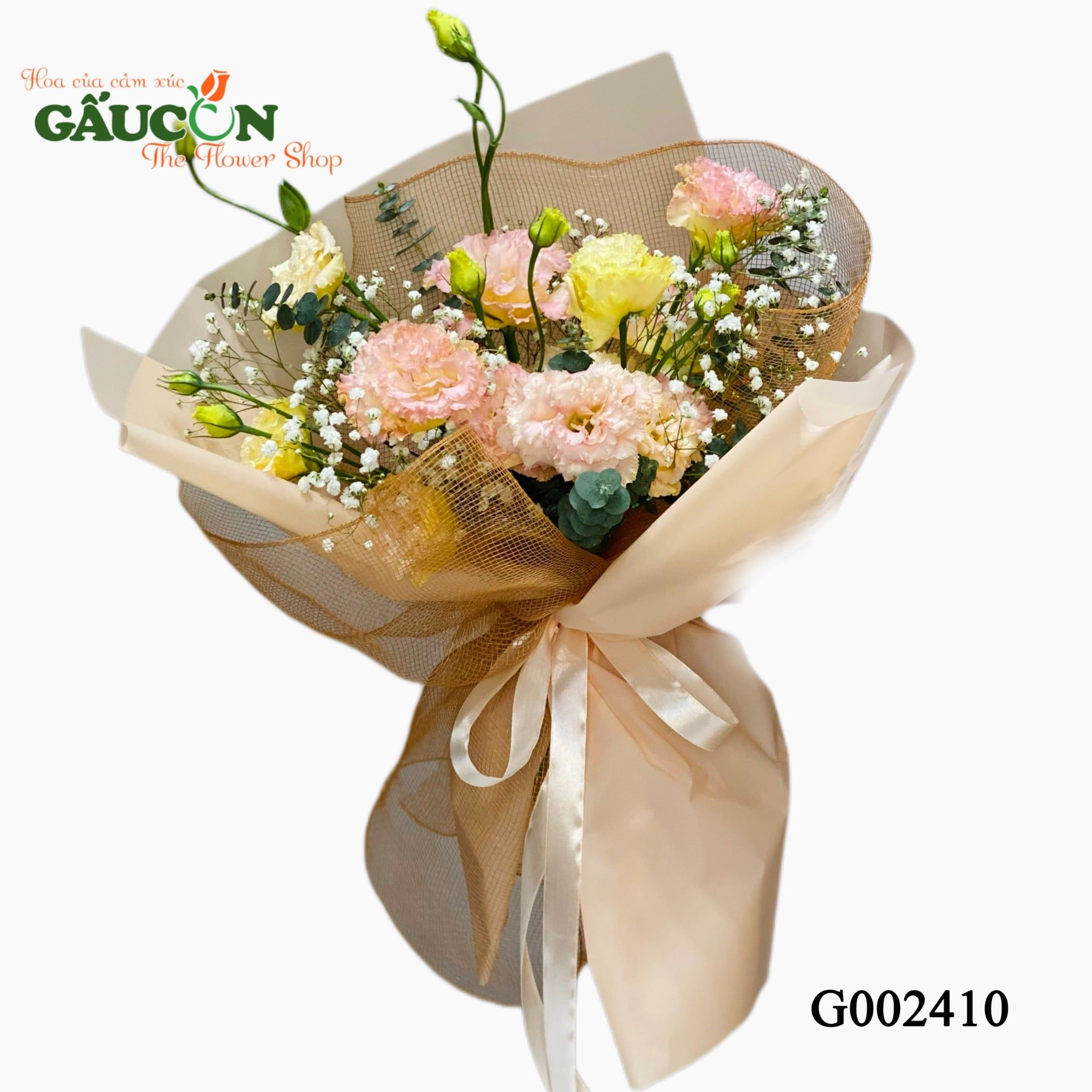 👉Quy cách: hoa cát tường xoắn, baby Hà Lan, Lá bạc