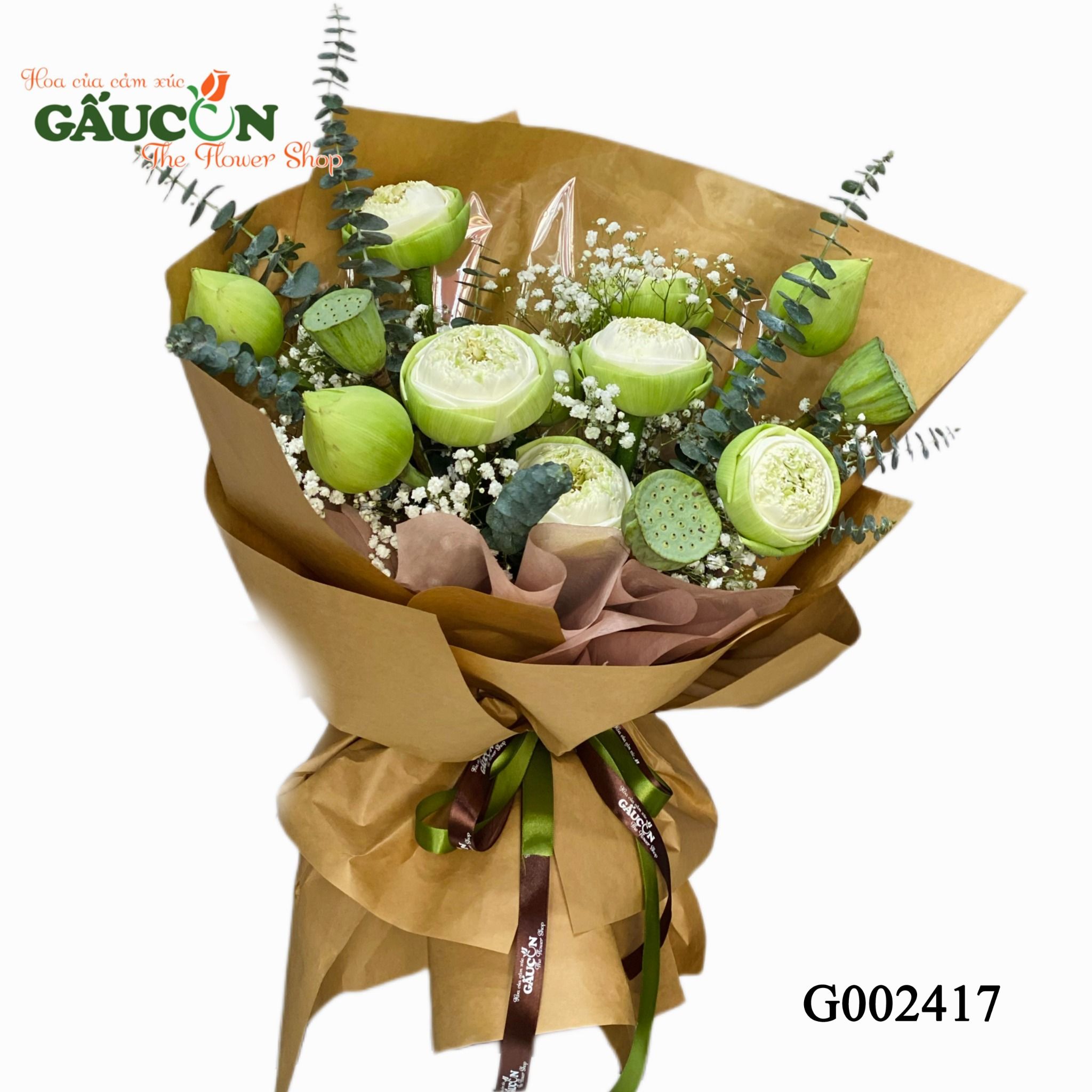 👉Quy cách: hoa sen trắng, hoa lá phụ theo mùa...