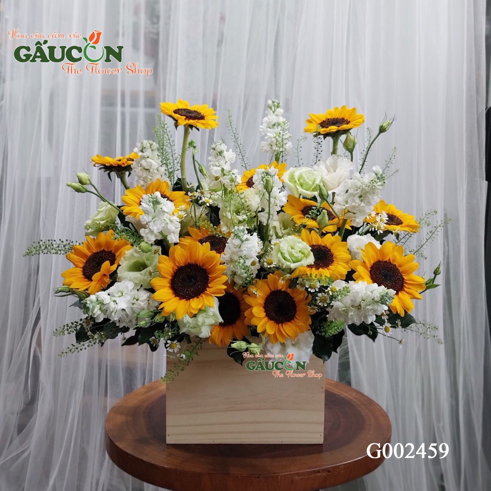 +Thành phần mẫu hoa gồm: hướng dương, phi yến, cát tường, cỏ đồng tiền, tana...