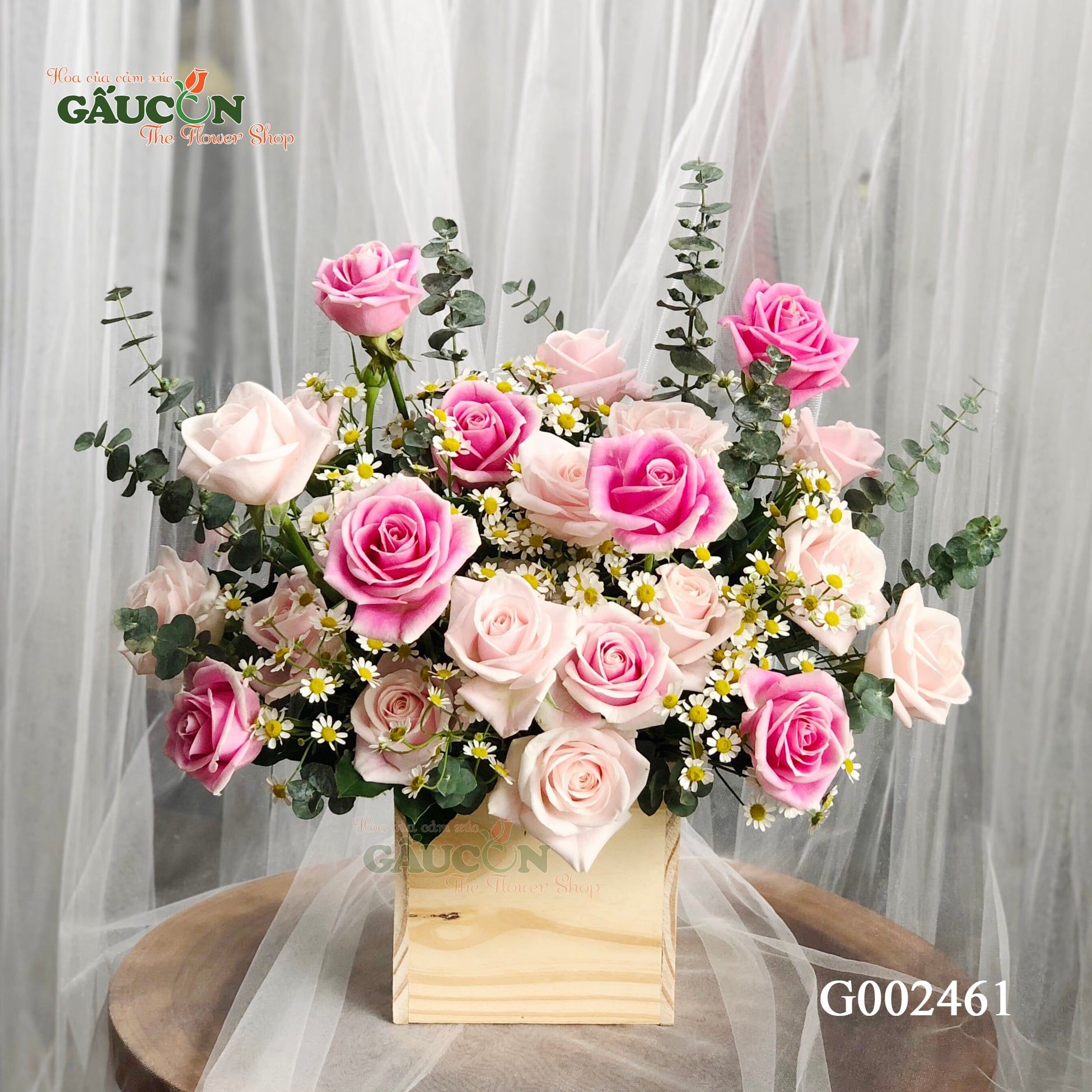 +Thành phần mẫu hoa gồm: hồng kem, hồng trà, tana, lá bạc...