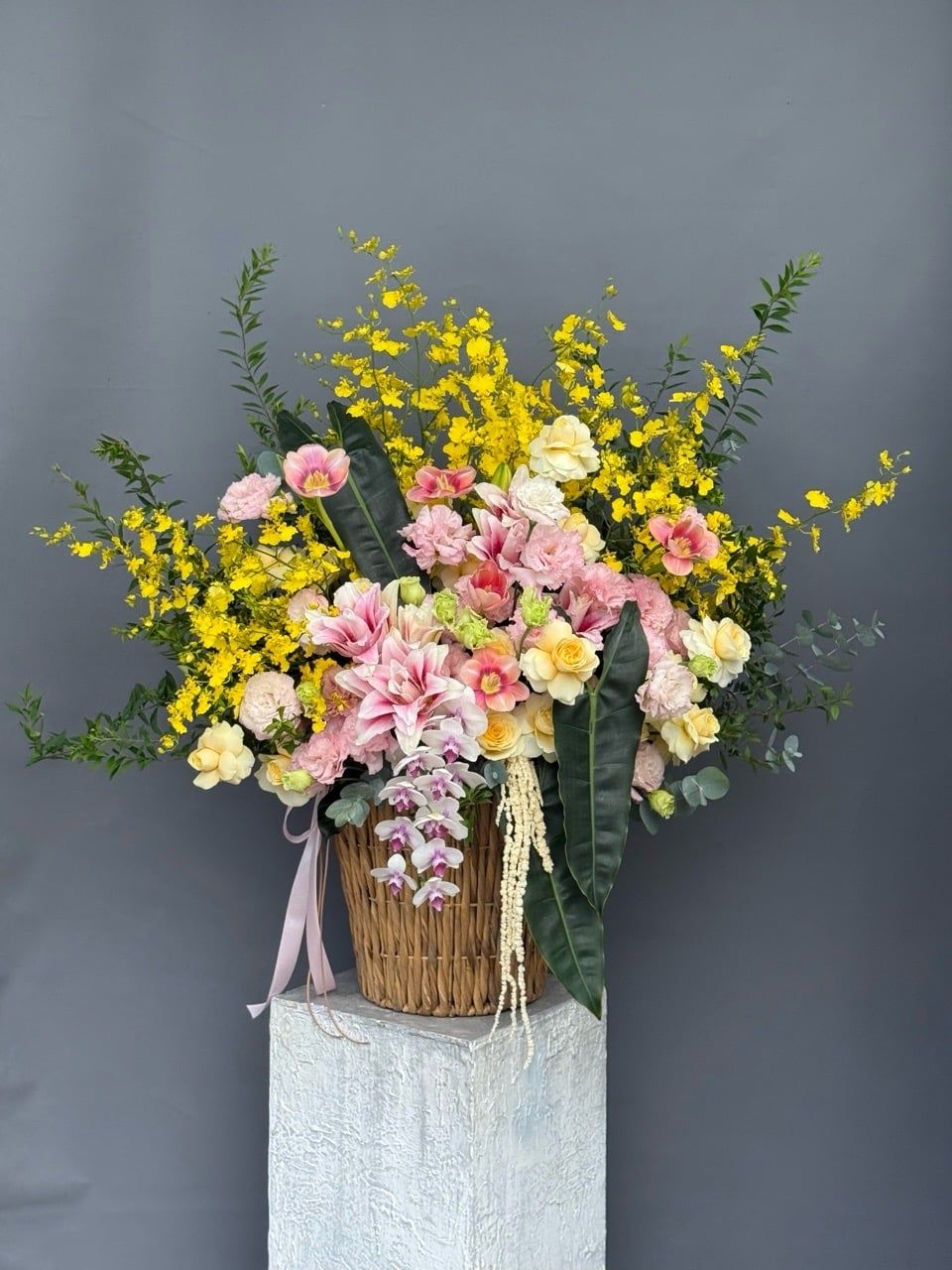 👉Quy cách: hoa hồng nâu lam , hoa lá phụ theo mùa
