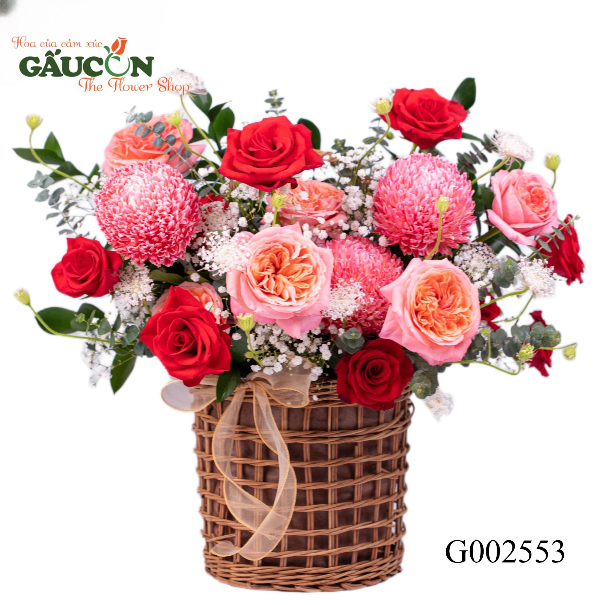 👉Quy cách: hồng london, hồng đỏ, cúc mẫu đơn, hoa lá phụ theo mùa...