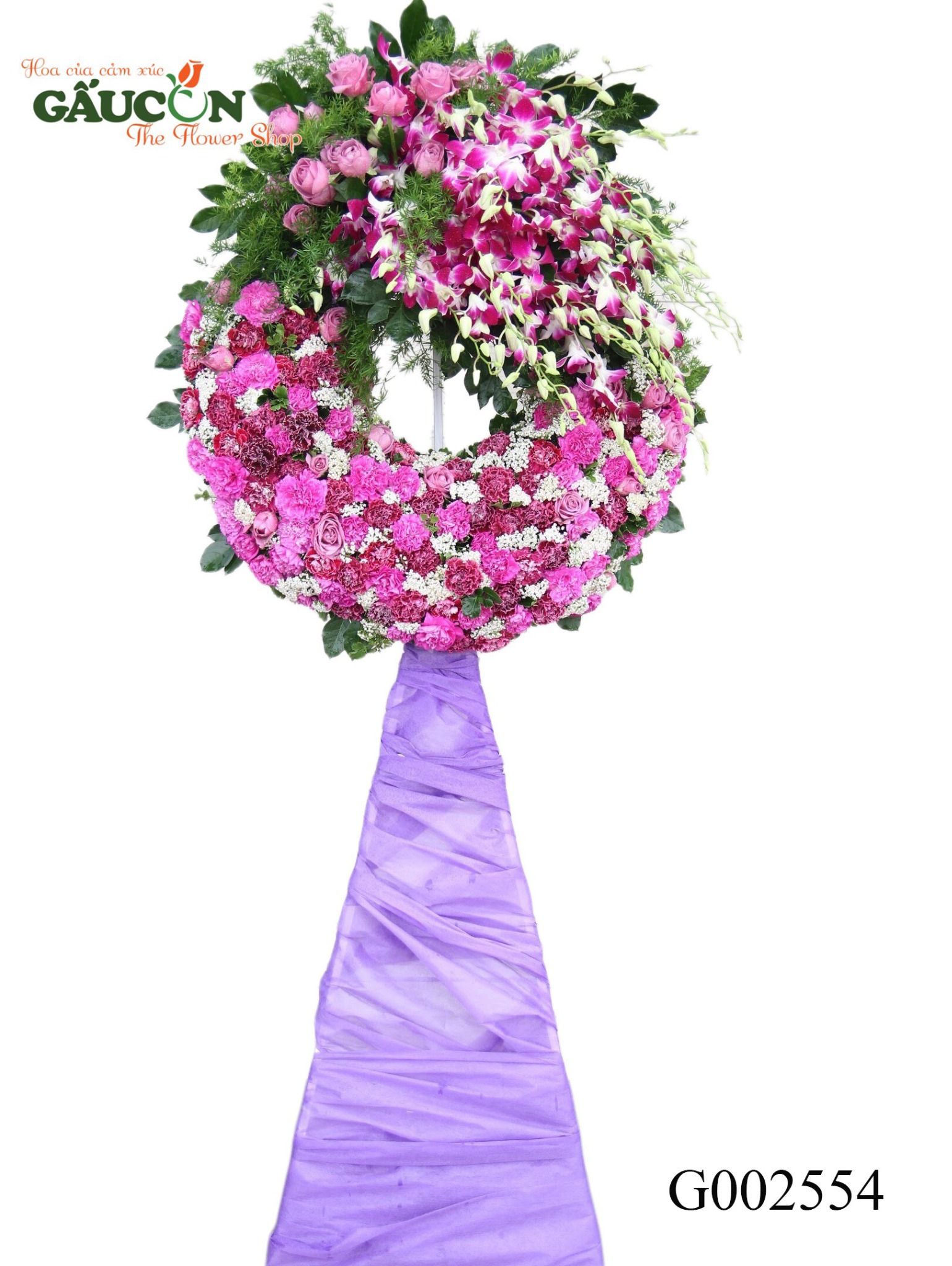 👉Thành phần: hoa hồng tím, hoa cẩm chướng, lan thái tím, hoa lá phụ theo mùa....