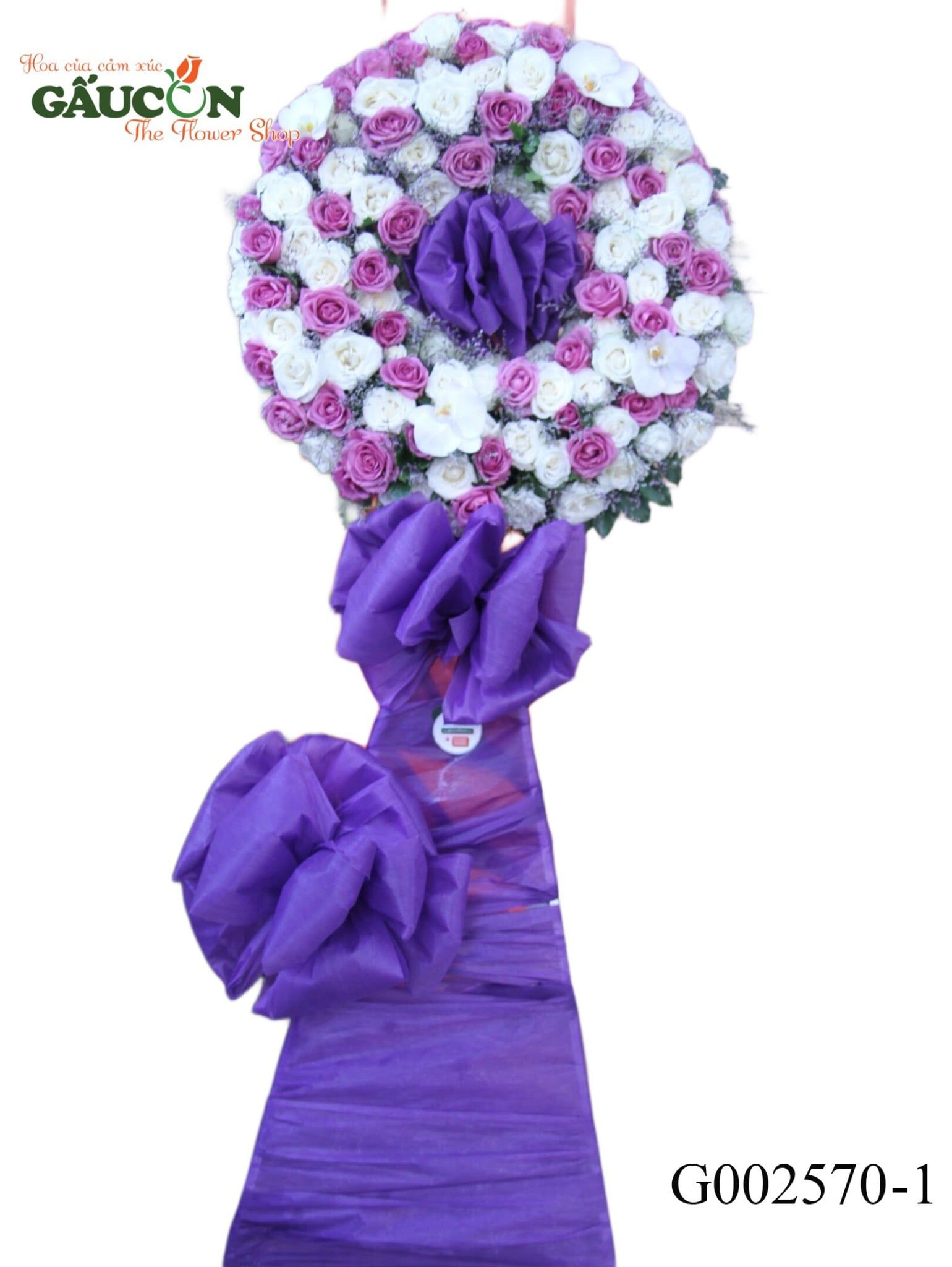 👉Thành phần: hoa hồng tím, hoa hồng trắng, hoa lá phụ theo mùa....