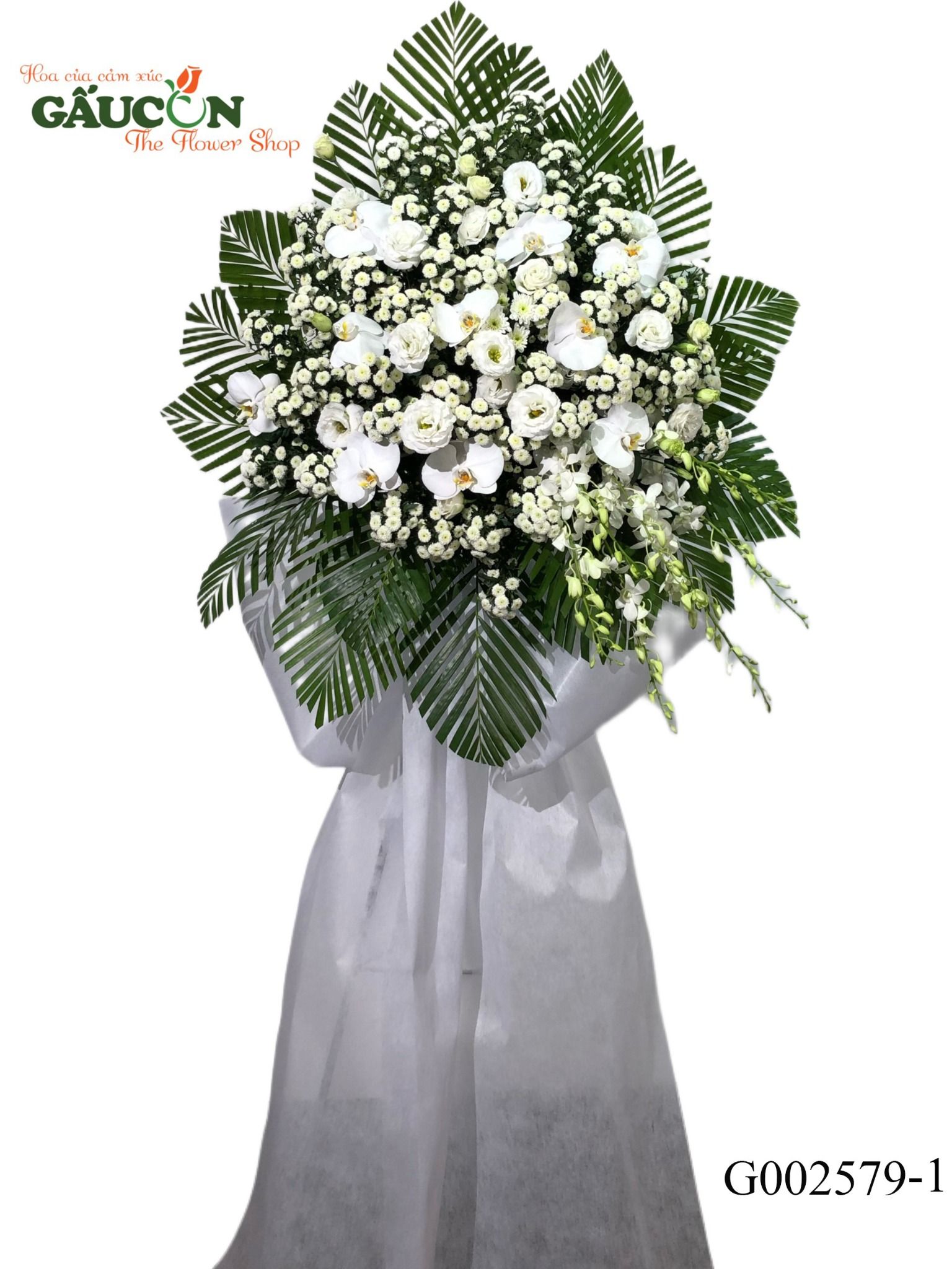 👉Thành phần: hoa cúc trắng, hồ điệp trắng, cát tường trắng, hoa lá phụ theo mùa....