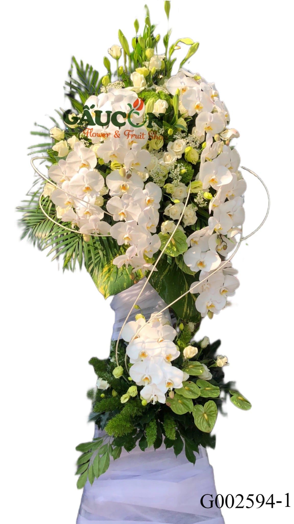 👉Thành phần: hoa loa kèn, hoa hồng trắng, lan hồ điệp trắng, hoa lá phụ theo mùa....