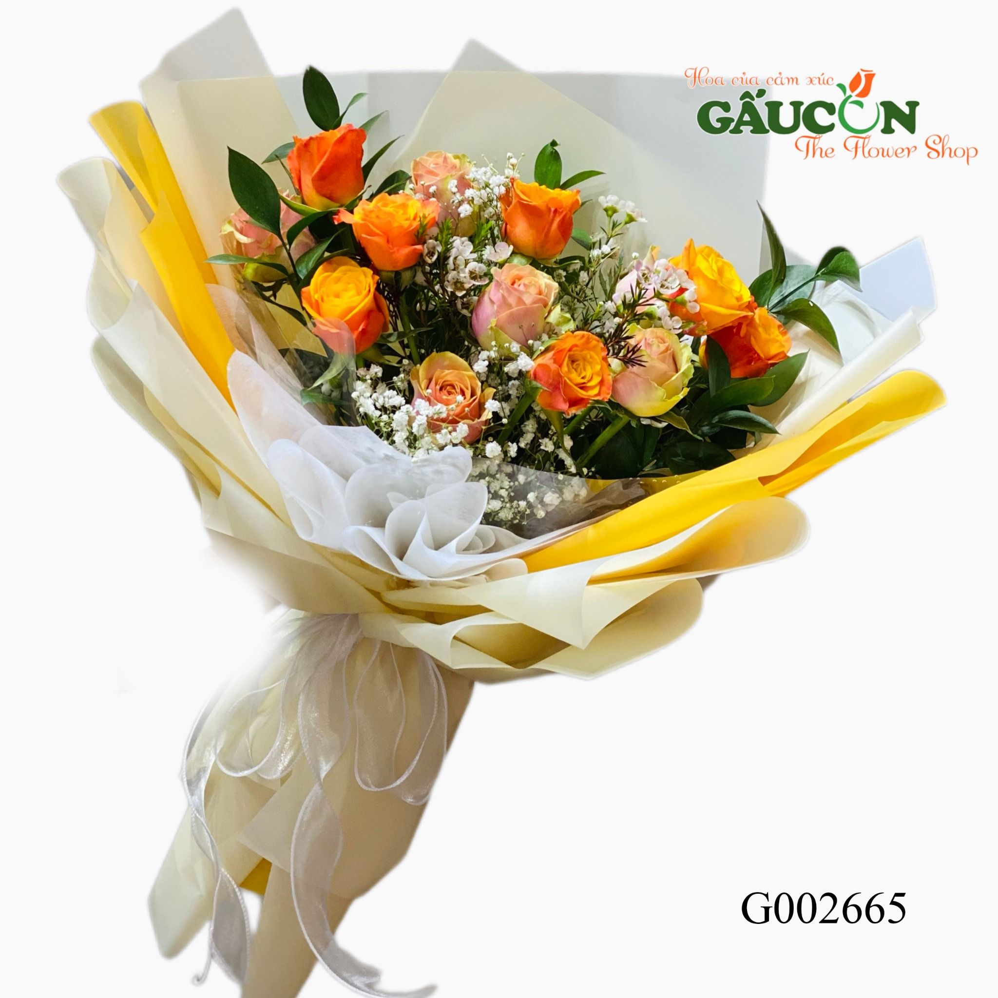 👉Quy cách: hoa hồng cam, hoa lá phụ theo mùa...