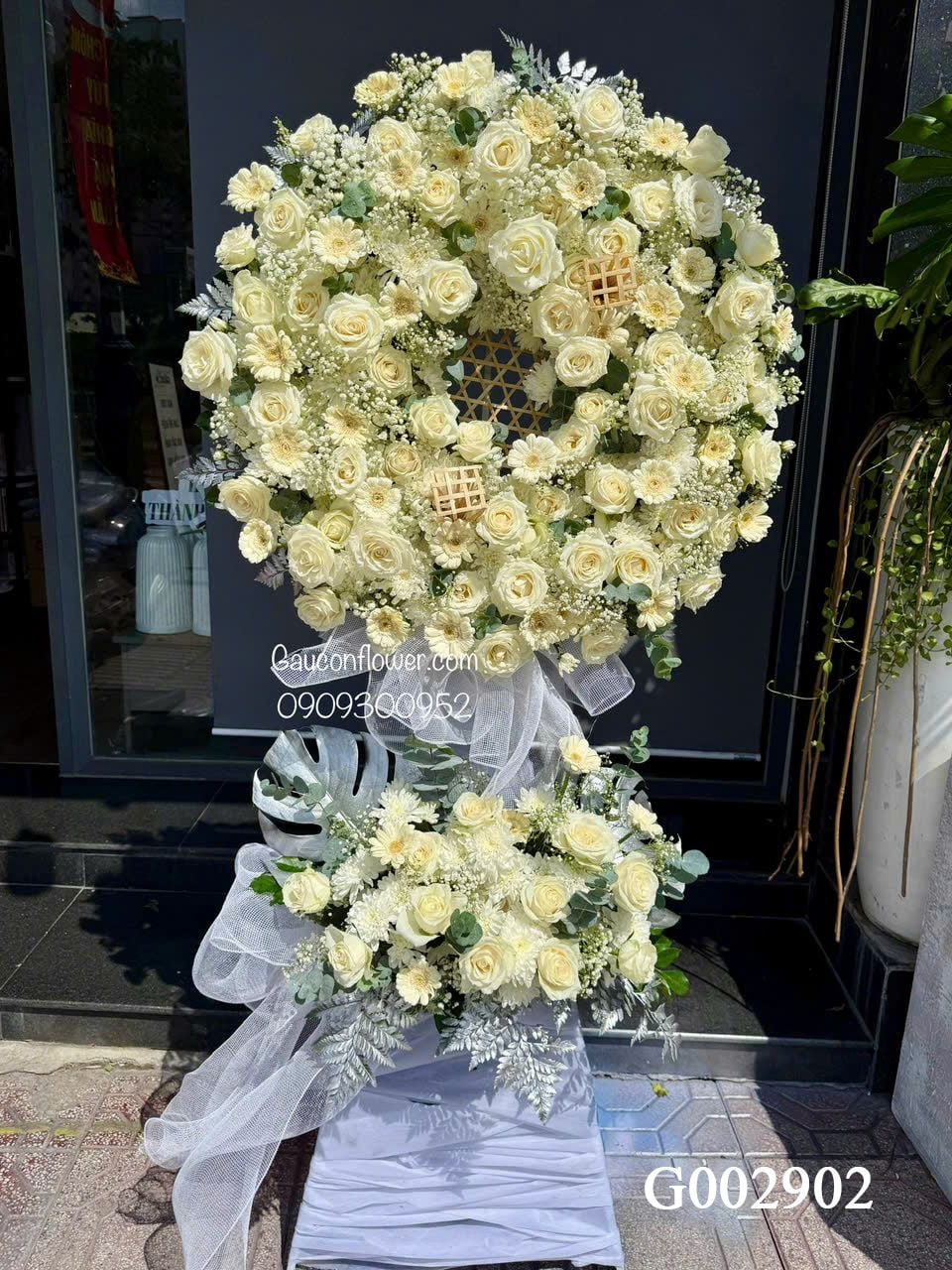 Thành phần: hồng đồng tiền trắng, hồng trắng, cúc trắng, babi trắng