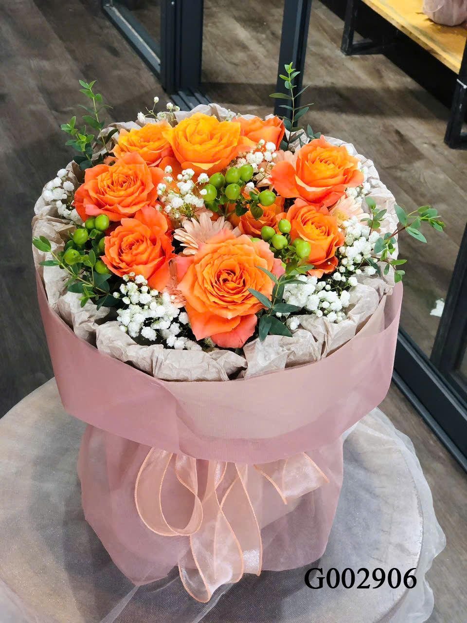 👉Quy cách: hoa hồng cam pirist, hoa lá phụ theo mùa...
