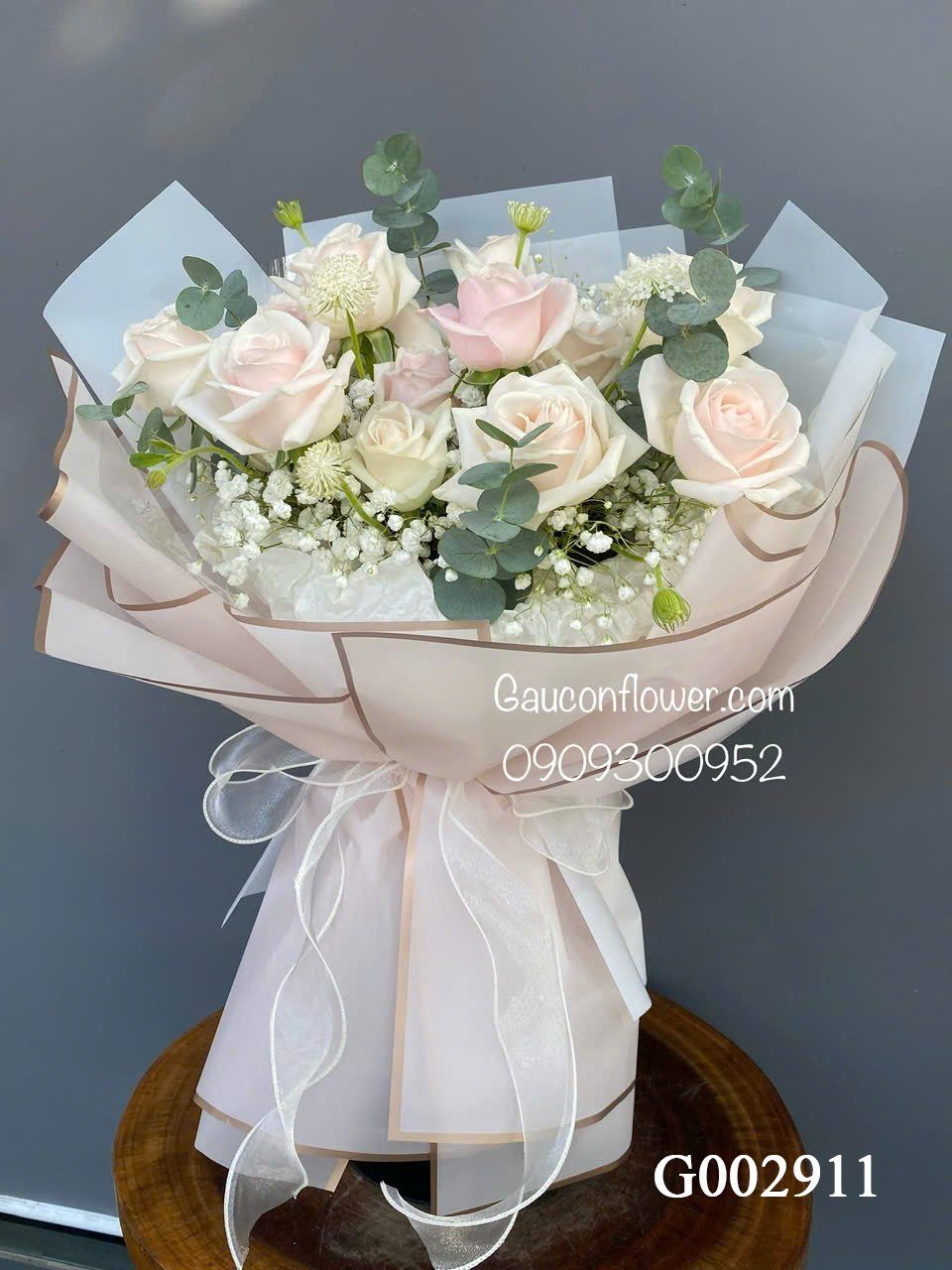 👉Quy cách: hoa hồng kem, hoa lá phụ theo mùa...