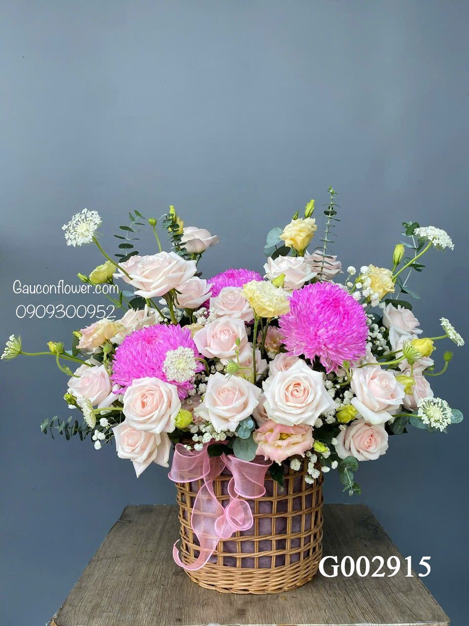 👉Quy cách: hoa hồng kem, cúc mẫu đơn, hoa lá phụ theo mùa...