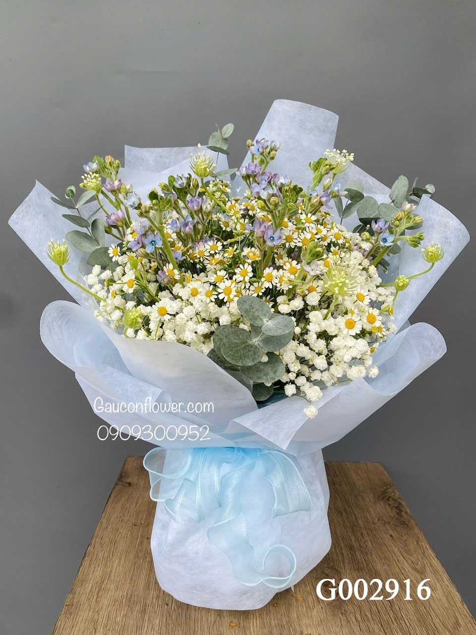 👉Quy cách: hoa babi, sao xanh, cúc tana, hoa lá phụ theo mùa...