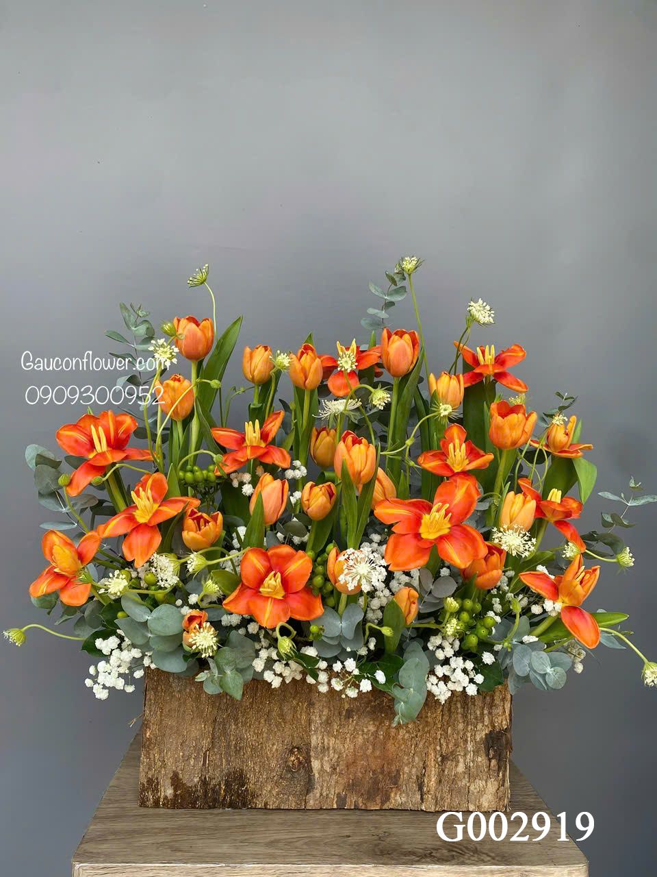 👉Quy cách: 30 hoa tulip, hoa von, hoa lá phụ theo mùa...