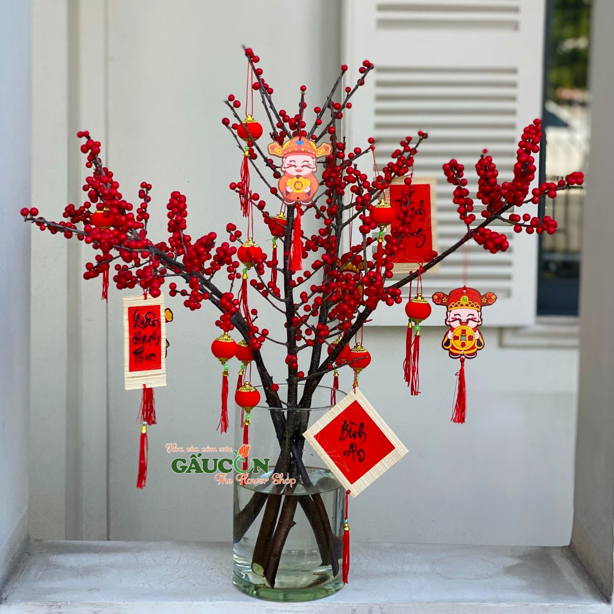 👉Quy Cách : 5 Cành Đông Đào Nhập Khẩu Size 70cm+set thẻ treo trang trí (đã bao gồm bình thuỷ tinh )